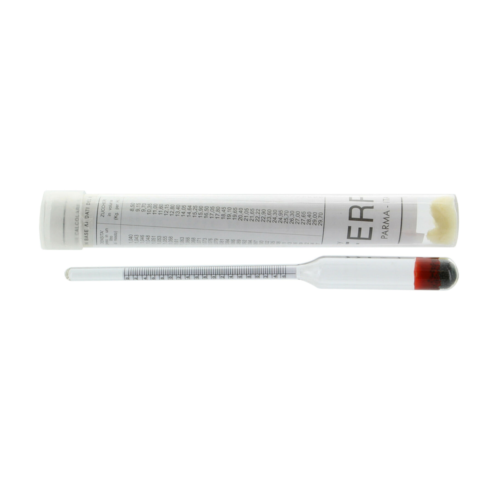 Con il mostimetro “babo” si misura la percentuale in peso degli zuccheri contenuti nel mosto, da cui si calcola il probabile grado alcolico del vino.